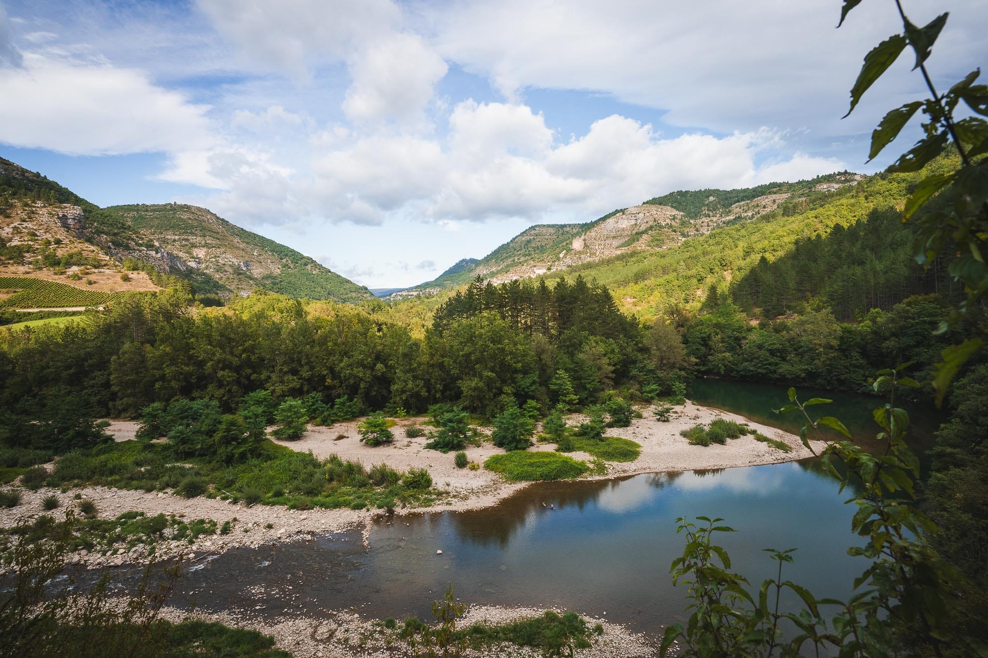 Les rapides qui jalonnent le parcours ajoutent une touche d’aventure, avant de finir en beauté juste après le village de Peyre, classé parmi les plus beaux de France.