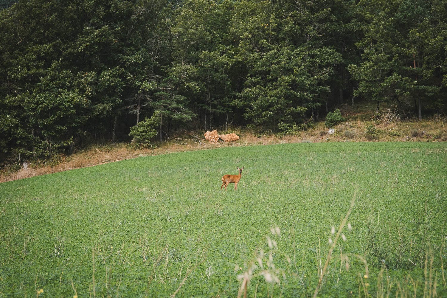 Le GR passe par des sentiers beaucoup plus dégagés, qui permettent d’avoir une vue imprenable sur la vallée et les champs agricoles environnants. Cela m’a même permis d’observer un chevreuil qui est passé juste à 5m de moi !