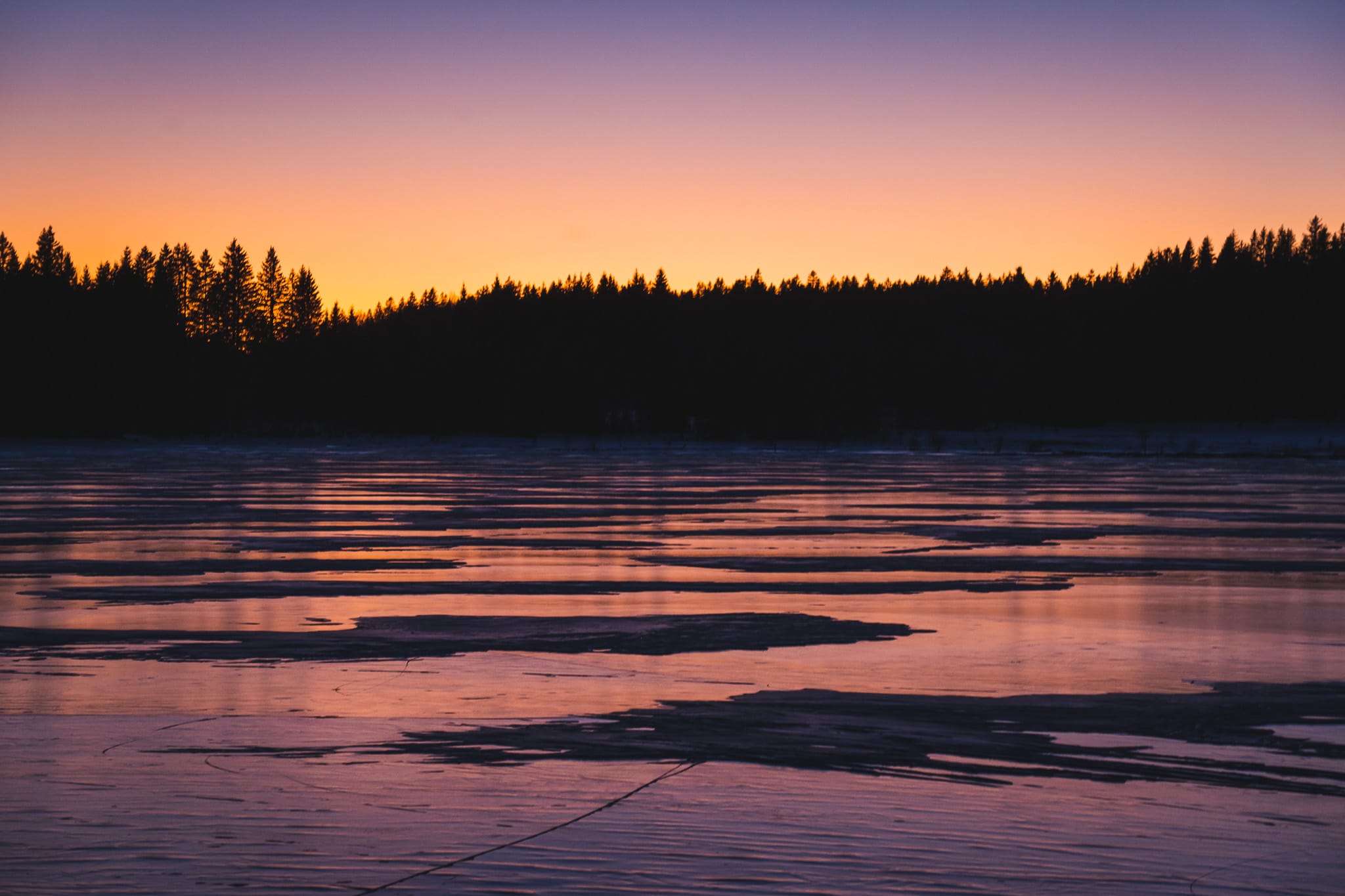 Le lac était entièrement gelé. Cela donnait une ambiance si particulière avec le coucher de soleil, c’était magique. Mais qui dit lac, dit humidité … toutes nos affaires ont gelé durant la nuit (nous y compris). Il devait pourtant faire seulement -5°C mais l’humidité amplifie la sensation de fraîcheur ! Malgré tout, avec la fatigue, nous avons passé une très bonne nuit, notamment grâce à nos bouillottes.