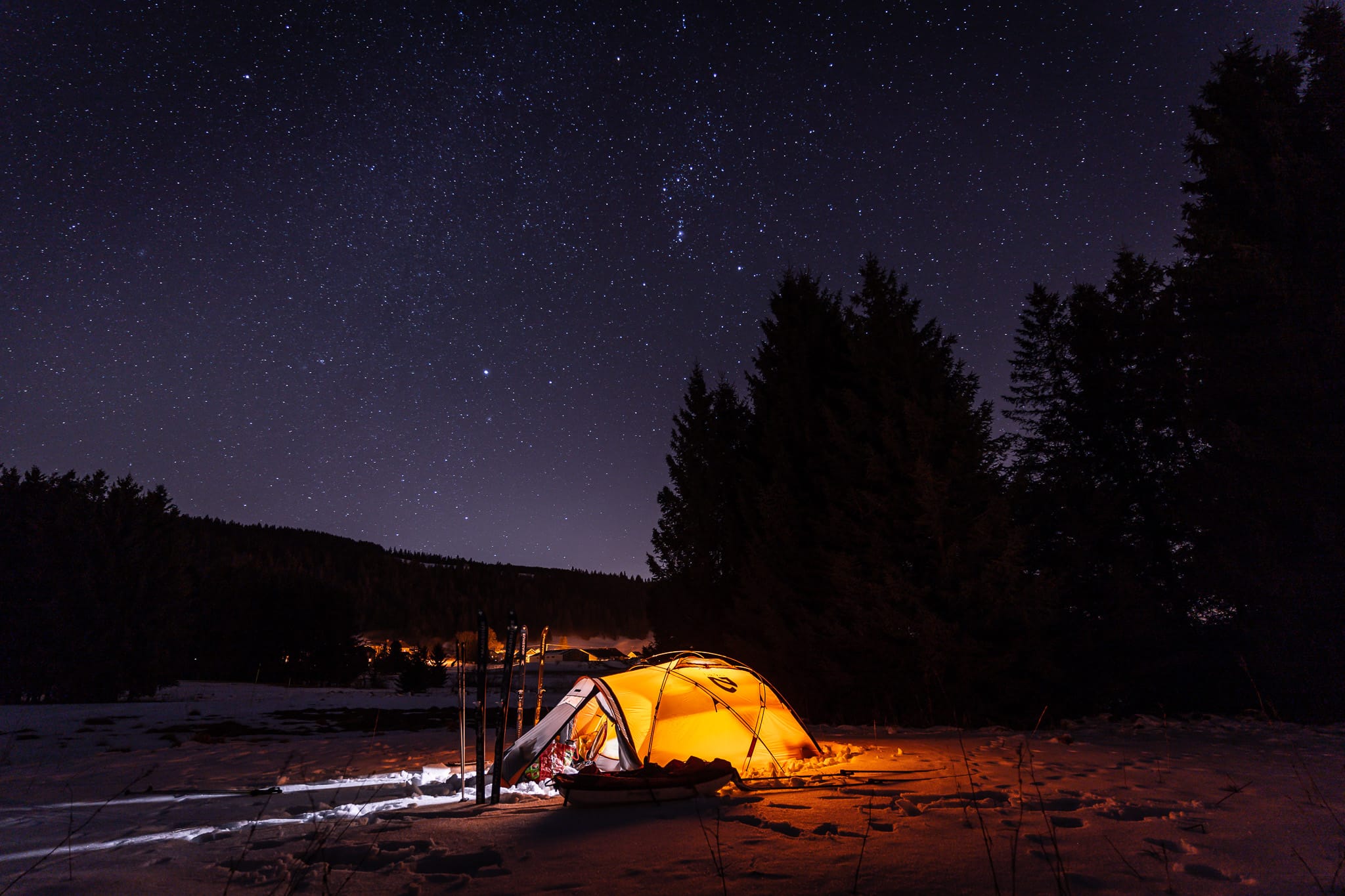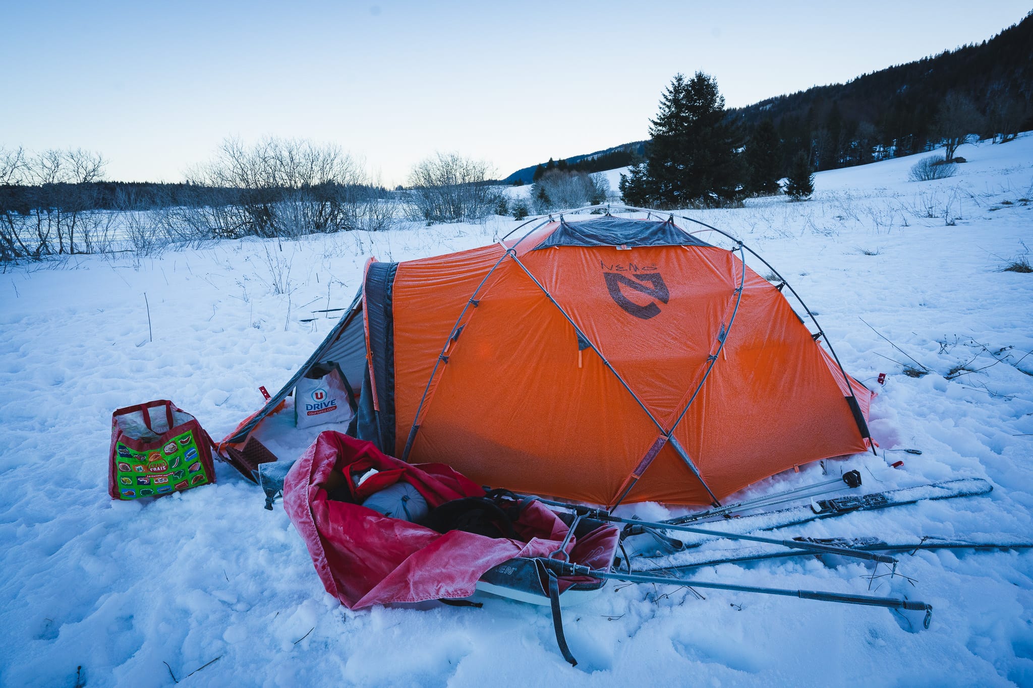 Après 4h de ski, nous décidons de planter la tente sur les hauteurs de Chaux-Neuve.