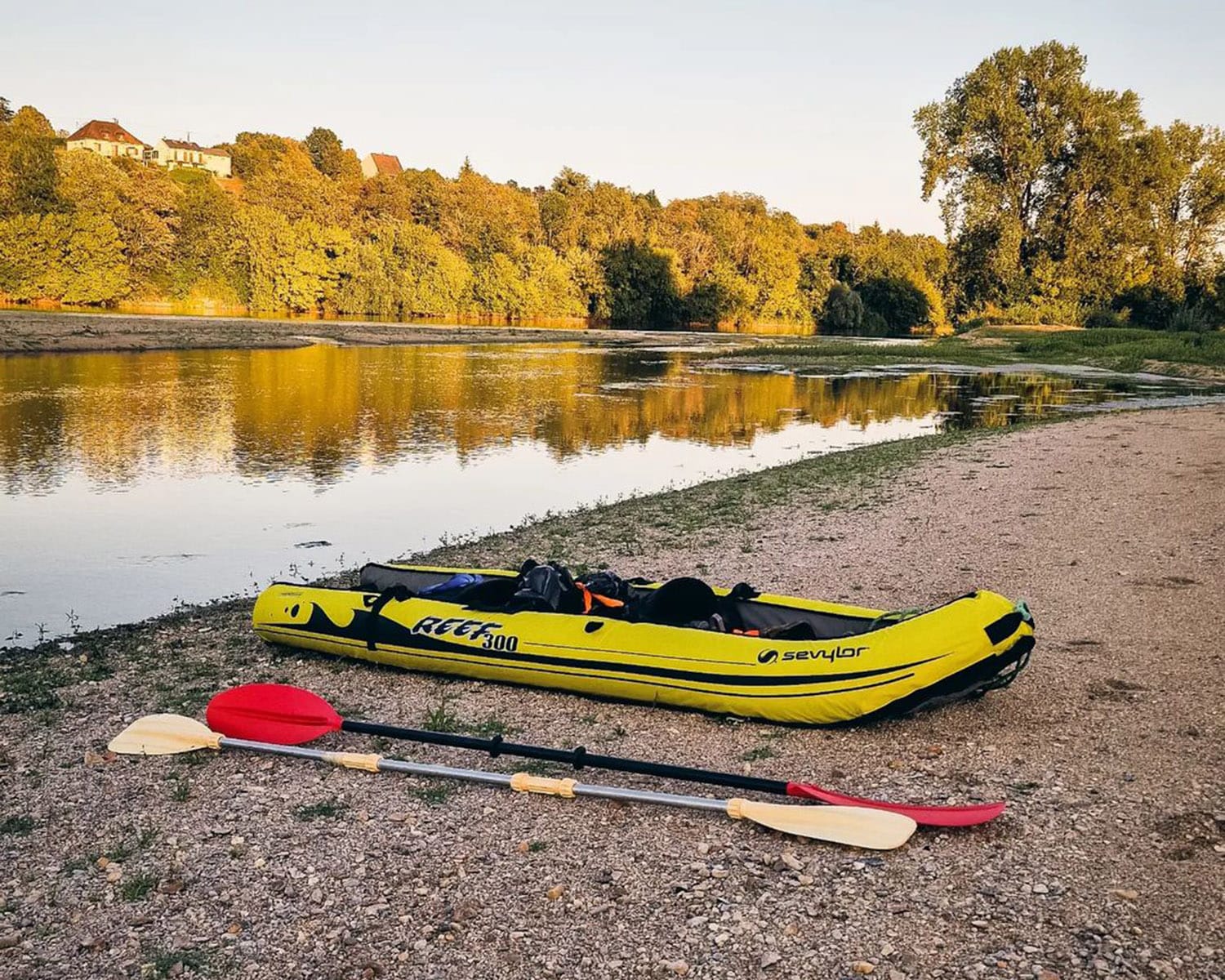 Adèle avait déjà son propre kayak gonflable avec des pagaies, ce qui nous a permis d’organiser facilement ce séjour. Il y a cependant des possibilités de location sur les bords de Loire, ou même sur leboncoin autour de chez vous. Beaucoup de propriétaires de kayak proposent leur bateau à la location, ce qui peut être intéressant afin d’être complètement autonome dans sa traversée. Une location avec des professionnels pourrait par exemple vous donner plus de contraintes sur l’itinéraire.