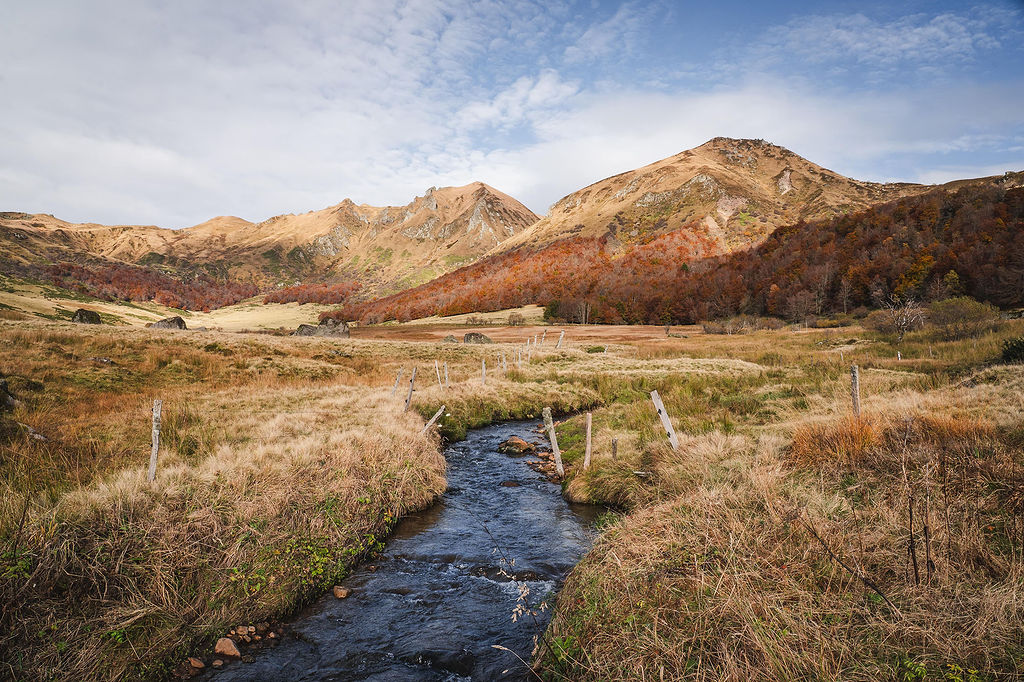 Dans le massif du Sancy, je vais souvent dans la vallée de Chaudefour, mais je n’avais encore jamais exploré sa voisine : la vallée de la Fontaine Salée. Rien que son nom donne envie… et quelle surprise en arrivant sur place ! Elle est désormais élue ma vallée préférée du côté Sancy.