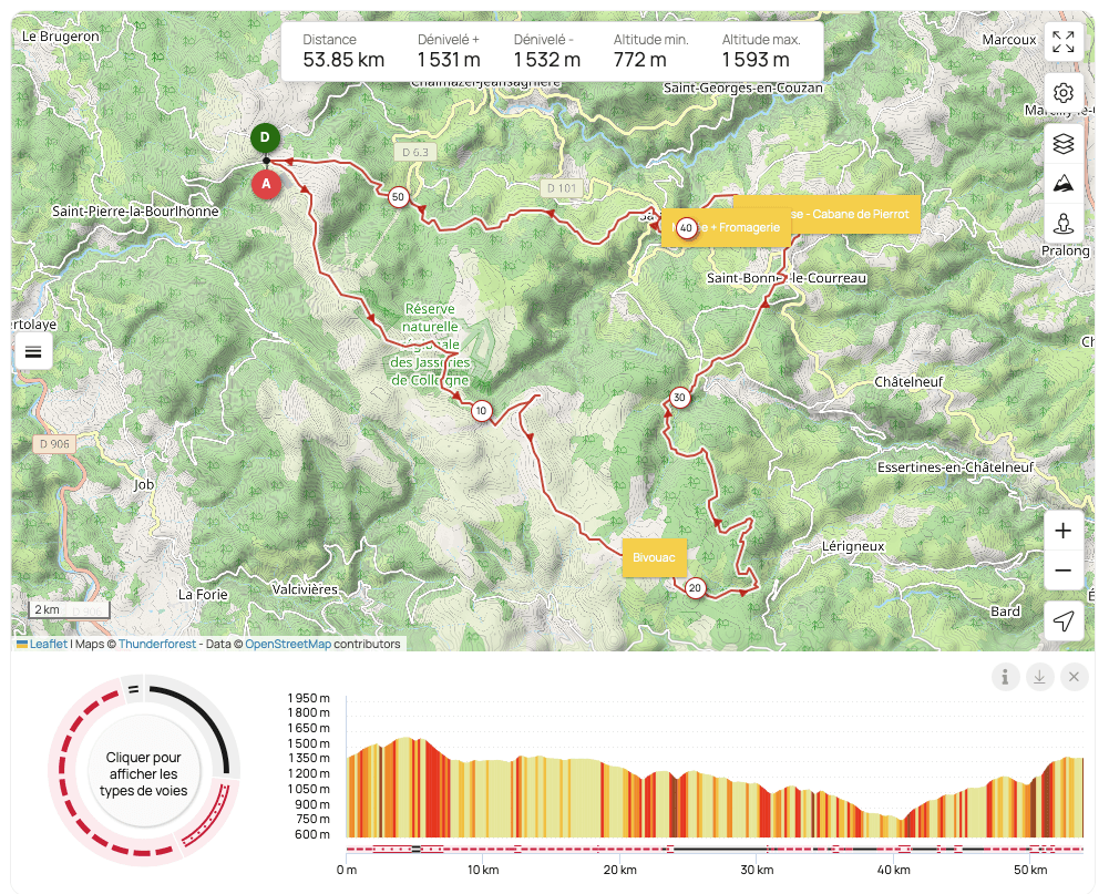 Belle balade avec un lieu sympa pour dormir. Est-il possible de faire un bivouac autour de Saint-Bonnet-le-Courreau, ? Vous avez vu des endroits pour cela ou faut-il trouver un gîte ?
